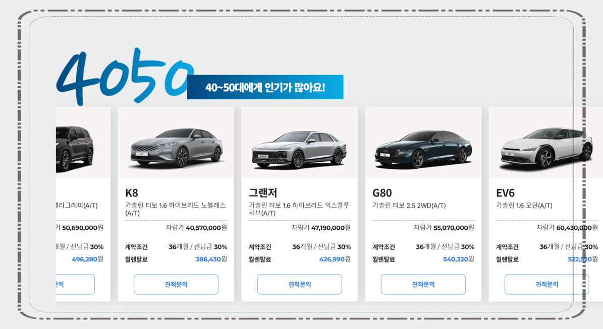 4050세대들이 좋아하는 카니발, 그랜저 등도 준비되어 있답니다.